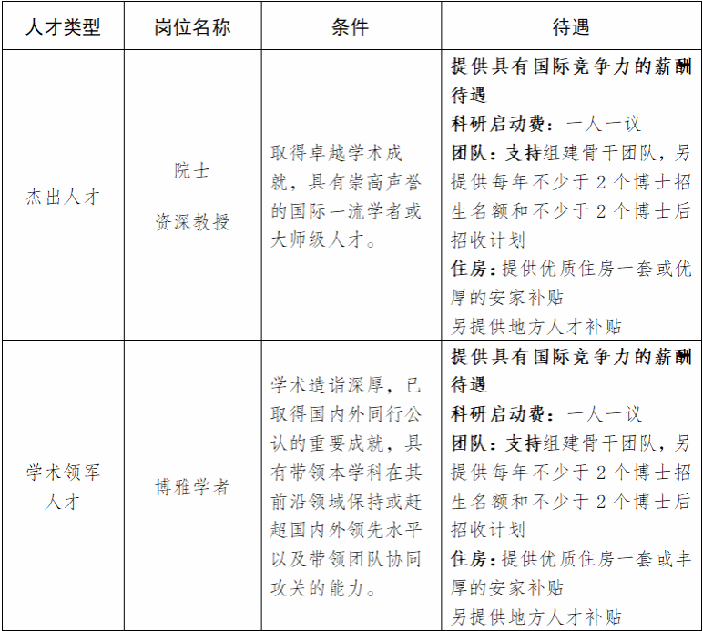 4. 配套服务:可享受包括科研、教育、医疗、养老、交通、金融等在内的23项特殊福利政策,享受公费医疗、年度体检绿色通道等,协助解决保险、落户和签证等相关事宜,提供一站式服务。