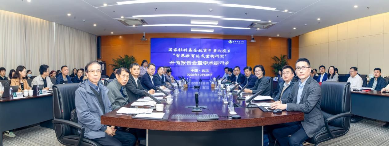 (通讯员 彭晛 郝晓晗)2025年10月30日,国家社科基金教育学重大项目“智慧教育范式重构研究”开题报告会暨学术研讨会在华中师范大学南湖综合楼1182会议室召开。全国教育科学规划领导小组办公室主任李永智、项目主管姜雨婷等主管部门领导,南京师范大学顾建军教授、湖南师范大学刘铁芳教授、北京大学蒋凯教授、浙江大学阚阅教授、西北师范大学郭绍青教授、北京大学郭文茗研究员、华中师范大学陈佑清教授等项目评议专家,华中师范大学校长彭双阶、社科处处长段锐、人工智能教育学部副部长左明章等领导,以及项目首席专家刘三女牙教授、骨干成员岳伟教授、曹培杰研究员、孙建文教授等共计50余人出席会议。