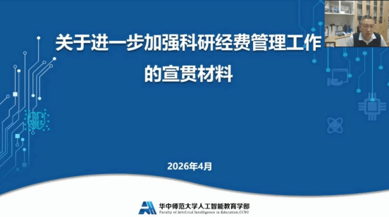 学部副部长兼国家数字化学习工程技术研究中心常务副主任、教育大数据应用技术国家工程研究中心常务副主任吴砥,就进一步加强科研经费管理工作进行了宣讲,要求广大教职工强化纪律意识,严格执行相关要求,确保科研经费使用规范有序。