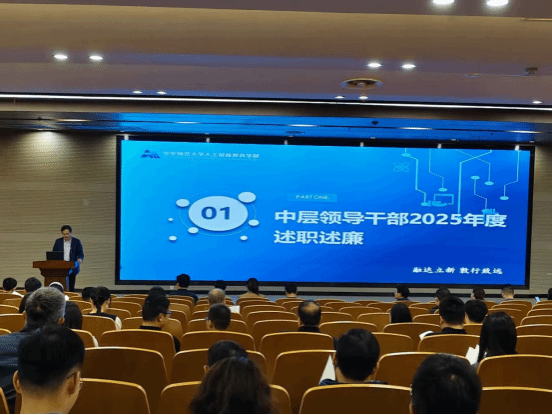 会上,开展了2025年度中层领导干部述职述廉考核工作。黄涛、吴小平、左明章、吴砥围绕政治品质和思想道德、工作能力和管理水平、精神状态和工作投入、履行职责和工作绩效、为政清廉和守纪律守规矩五个方面进行现场述职,其余7位中层领导干部进行书面述职。述职结束后,教职工现场扫码进行民主测评。