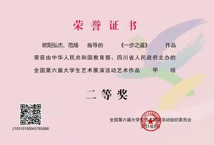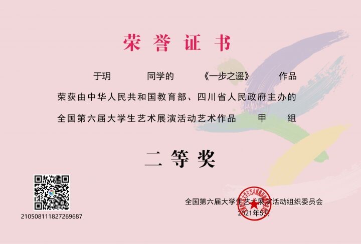 人工智能教育学部讯(记者苗惠清)5月6日至5月12日,由教育部、四川省人民政府共同主办的全国第六届大学生艺术展演活动(以下简称“大艺展”)在成都举行,人工智能教育学部本科生于玥团队微电影作品《一步之遥》在本次比赛中获评艺术作品甲组二等奖。
