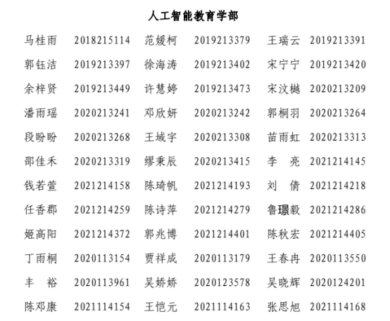 人工智能教育学部朱慧琳等19名学生荣获2021年度优秀共青团干部(学生)