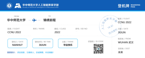 毕业留念贴心。值毕业之际,学部为每一位毕业生精心准备了毕业伴手礼,鼓励毕业生们带着母校的爱与勇敢,踏上新的人生征途。一件展现人工智能教育学部特色的毕业文化衫,在科技创新日新月异的AI时代,鼓励学部学子在新时代建功立业,砥砺前行。一张刻有毕业生姓名和学号的专属登机牌,寓意毕业生们即将从华中师范大学人工智能教育学部起航,各自奔赴锦绣前程。一件印有华中师范大学logo的马克杯礼盒,表达了对毕业生的爱意与不舍,也象征着毕业生们与母校的情谊永恒长久。