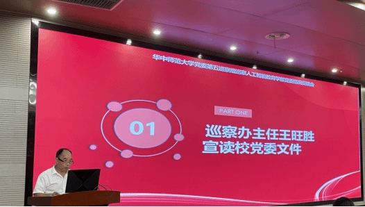 会上,巡察办主任王旺胜宣读了《华中师范大学第五巡察组巡察人工智能教育学部党委的反馈意见》的通知。