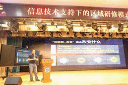 会议采取专题报告、现场观摩、交流研讨的形式进行。专题报告由教育信息技术院赵呈领教授主持。华南师范大学网络教育学院副院长武丽志教授以《互联网时代的教师专业发展》为题,从新理念、新模式、新技术、新资源、新体系等五个方面详细介绍了教师专业发展的有效路径。江苏省南京市秦淮区教师发展中心丁玉祥副校长从教师培训面临技术应用的发展趋势、支持区域网络研修的政策依据、内涵的深度理解、模式的个性选择、运营的关键路径等方面作了《技术支持下区域教师网络研修模式创新与研训方式转型》专题报告。