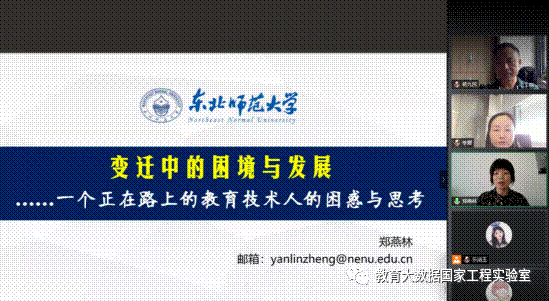 (通讯员 乐洁玉 审读人 王俊)9月27日,东北师范大学教育技术学专业教授、工学博士、博士生导师;教育部教学指导委员会教育技术分委员会委员、吉林省高等学校在线教学指导委员会委员、教育部师范专业认证专家、全国教育硕士专业学位优秀教师郑燕林教授应邀在线主讲第八期智能教育大讲坛——“变迁中的困境与发展——一个正在路上的教育技术人的困惑与思考”。