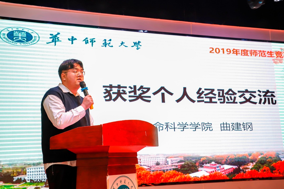 (通讯员:董彬彬 摄影:俞啸钰)12月13日,华中师范大学“第十二届师范生专业技能大赛”“第十届最佳师范生集体、师范生活动积极分子”“2019年度师范生训测工作先进单位”颁奖典礼在大学生活动中心举办。经过学院选拔赛、学校决赛的层层选拔,105个参赛选手和团队获得“第十二届师范生专业技能大赛”相应奖项,8个集体荣获“第十届最佳师范生集体”称号,147名师范生获得“第十届师范生活动积极分子”称号,9个学院荣获“2018年度师范生训测工作先进单位”称号。
