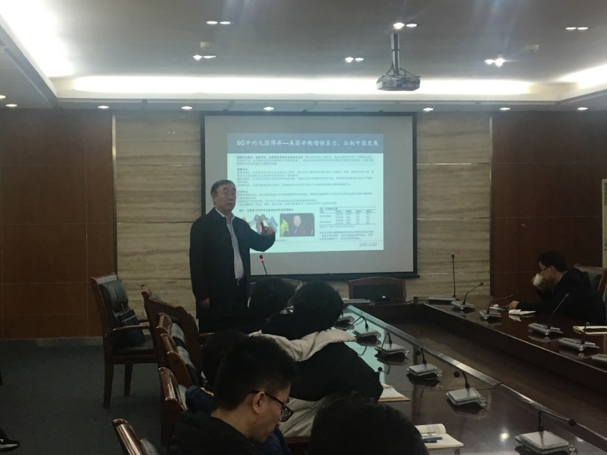 姜正新教授从5G的概述、5G中的大国博弈、5G产业链分析、5G投资机遇、5G重点应用等5个方面深入浅出地对5G的发展现状做了梳理并展望了5G的应用方向和发展前景,指出高质量云VR/AR、车联网、工业智能、智能能源、远程医疗、家庭娱乐、联网无人机、社交网络、个人AI辅助、智慧城市将是5G的十大重点应用方向。讲座上,姜教授热情回答了大家的提问,与师生进行了互动交流。