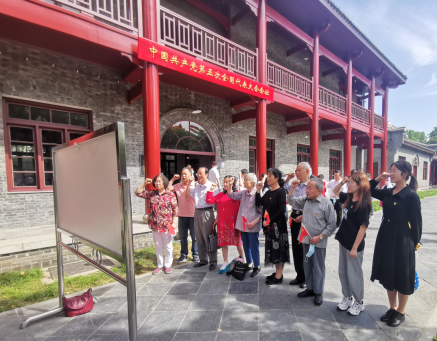 参观完后,党员教师和学生佩戴党徽、手握党旗,在党旗下进行了严肃而庄重的宣誓。随行的学生党员姜雨薇感慨到:“这个革命旧址,凝结着中国共产党人对革命忠贞不渝的信念与奋斗不息的精神,一来到这,敬仰之情就油然而生了。”
