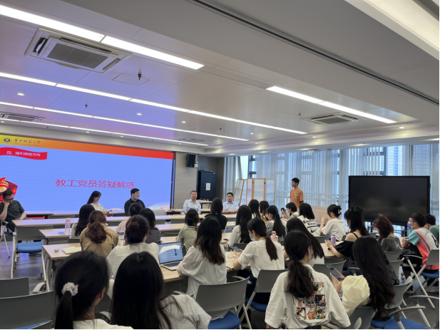 随后,为加强师生之间在学业和生活中的沟通,设置了教职工党员答疑解惑环节,教师党员以抽签的方式解答学生党员的问题。从毕业论文选题,到如何在求职中突出自身优势,再到如何决定就业还是读博深造等等问题,教师党员们都从自身经历出发给予了诚恳的建议。就如何抉择读博还是就业这一问题上,教工党支部书记罗恒老师表示:“一是选择需从自身兴趣出发,兴趣是最好的老师;二是要眼光开阔,读博不仅可以考虑国内院校,国外也有众多选择;三是需结合自身今后职业规划,来选择继续深造或是就业。”就这一问题,龙陶陶老师对正在迷茫徘徊中女性同志给予鼓励:不要过于在乎社会对女性的偏见,喜欢什么就要勇敢去做。学部陈晓宇副书记更勉励我们要锤炼过硬本领,才能在竞争激烈的就业环境中脱颖而出。