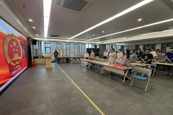 典礼第一项,全体起立,奏唱国歌。在激昂的歌声中,结业典礼正式开始。