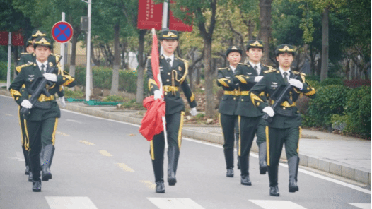 仪式伊始,国旗护卫队成员身着统一制服、步伐整齐划一,迈着铿锵的正步入场。他们身姿挺拔、目光坚定,展现出良好的纪律意识与昂扬的青春风貌。伴随着雄壮的《义勇军进行曲》,五星红旗冉冉升起,全体师生肃立行注目礼,高唱国歌,表达对祖国的崇高敬意与无限热爱。