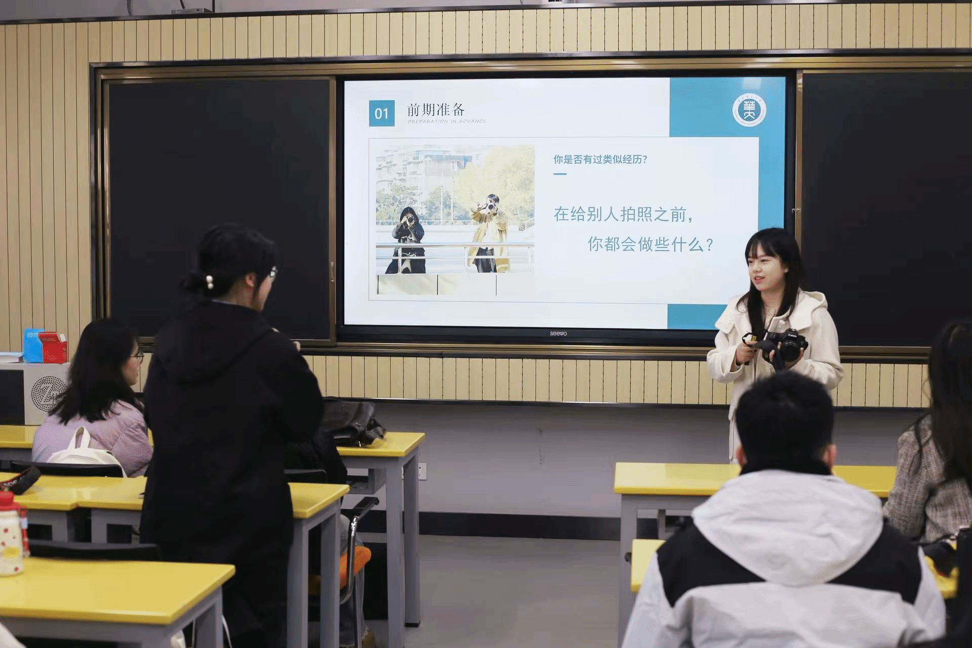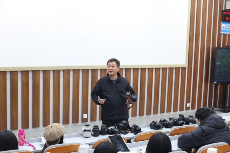 本次培训课程的第二讲是《镜头中的艺术》,讲授嘉宾是华中师范大学文科综合国家级实验教学示范中心工程师、人工智能教育学部数字媒体系专业教师——王翔老师。王翔老师现场展示了多部常用于活动拍摄的相机实物,帮助学员建立直观认知,随后从小孔成像原理溯源,独创性地提出了“五个三角形”理论模型,不仅传授了参数调节的硬核技巧,更引导同学们透过镜头发现世界,提升摄影审美与实操能力。