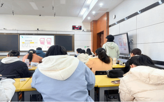 主讲人首先将重点聚焦于普通话语音的“骨架”——声母。针对南方方言区学生普遍存在的平翘舌音(z、c、s与zh、ch、sh)、鼻边音(n与l)混淆等痛点问题,结合发音器官解剖图,深入浅出地讲解了不同声母的发音部位与发音方法。主讲人强调,找准舌尖与上腭的接触点是发好声母的关键,并通过“对比辨音”和“夸张发音法”,带领同学们反复体会舌位的前后差异,帮助大家从理论层面打破了长期以来的发音惯性。