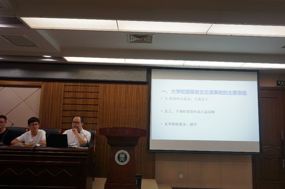 接下来进行的是会议第二项:校情校史及中心情况简介、校纪校规介绍、安全知识教育。谈到校情校史,张志老师首先问起学生们对于华中师范大学最深的印象是什么,其中一位同学提到“坡多”,顿时获得大家一致共鸣。同时还为大家展示了去年新生交流会中搜集到的对于校园的印象,其中也有不少同学写到“坡多“,看来真是英雄所见略同。张老师以此来提醒大家下坡注意交通安全,走路不要看手机。