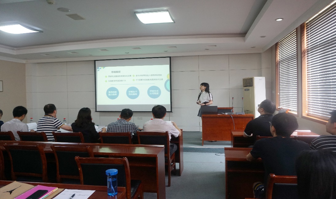 随后,比赛正式开始,首先上台展示的是工程中心的邱玥团队,项目是针对K12阶段英语教育的一款产品。该团队从产品、市场、财务、发展计划等方面介绍了项目的情况。介绍完毕之后,评委席讨论非常热烈,华中师范大学教务处创新创业教育办公室主任陈凯老师首先评论,他表示,项目本身完成度很高,但是在市场预测和盈利模式上仍然存在可以改进的空间。随后,其他评委分别就项目的运营、市场推广和财务预测做出了评价。