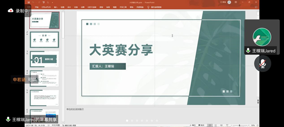 活动伊始,在申若涵进行了简短的开场介绍后,王稼瑞对全国大学生英语竞赛进行了相关讲解,主要包括赛事简介、奖项比例分布、如何获取比赛信息、最新比赛消息及参加大英赛的优点。随后,他也针对性地讲解了赛事内容,包括考试题型、赛事流程和资料推荐等,并根据自身经验,分享了考试做题的顺序及题源,帮助同学们初步了解大英赛。