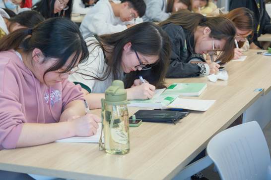 钢笔字比赛在南湖综合楼7001会议室举行。比赛伊始,主持人向参赛选手们介绍比赛规则:每位参赛选手需在15分钟内完成书写纸上的不同编号对应不同的书写内容。比赛过程中,选手们横、竖、撇、捺,一笔一画,认真且专注地完成参赛内容。一幅幅字迹工整、力透纸背的参赛作品,展现了选手们扎实的硬笔书法功底。时间一分一秒地流逝,比赛结束,选手们自信且有序地交上了自己的书写作品。