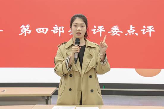 在评委点评环节,几位评委综合所有参赛选手的表现,分别给出了自己的建议和看法。蔡祎涵根据大家的演讲发音,指出了部分发音错误示例,并针对性地给出了许多发音练习方法。杨骥瑶则主要从演讲内容、语言表达、形象风度和演讲效果四个方面提出了许多改进建议,她着重指出了演讲过程中“演”的重要性,强调“演讲者须得做到自身情绪到位方可于观众有所感染”,同时,演讲过程中手势语言的运用,与观众适时的眼神交流,也能有效地增强演讲的对象感与交流感,为个人的演讲增色添彩。对照评委老师意见与自身演讲过程中的不足后,同学们纷纷表示“收获了许多实用演讲技巧并会在之后的尝试中加以实践运用”。