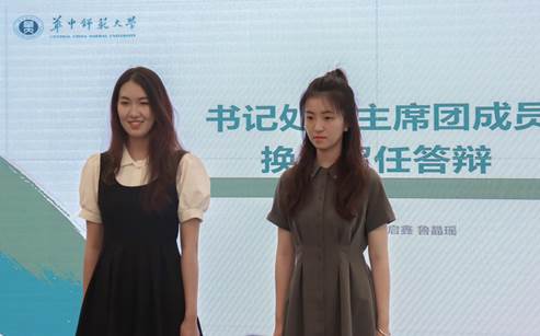 人工智能教育学部讯(见习记者 饶方玲 吴炜琴)人工智能教育学部团委、学生会在学部党委的领导和学校团委的指导下,坚持以“服务师生、促进成长”为宗旨,围绕“凝聚青年、服务大局、当好桥梁、从严治团”的四维工作格局开展学生工作,助力学部青年成长成才。为了进一步加强学部团学组织建设,开创学生工作新局面,人工智能教育学部于5月20日上午在南湖综合楼N7001教室组织开展了团委、学生会2023年书记处及主席团换届面试。人工智能教育学部党委副书记黄涛,团委书记汪双,团委副书记金宇晖、王瑞,以及现任书记处及主席团成员担答辩评委。