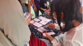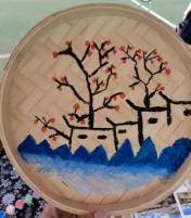 在游戏体验区,参观者可以通过图片配对、知识竞答等游戏参与互动,在轻松愉悦的氛围中加深对布依族文化的了解和记忆。此外,为了让大家切身体验布依族的民间艺术——簸箕画,展位提供了大小不一的竹簸箕、颜料和画笔,参与者可以根据自己的兴趣和想象在竹簸箕上自由作画,让大家在欣赏美的同时,深入感受中国传统民间艺术的独特魅力。