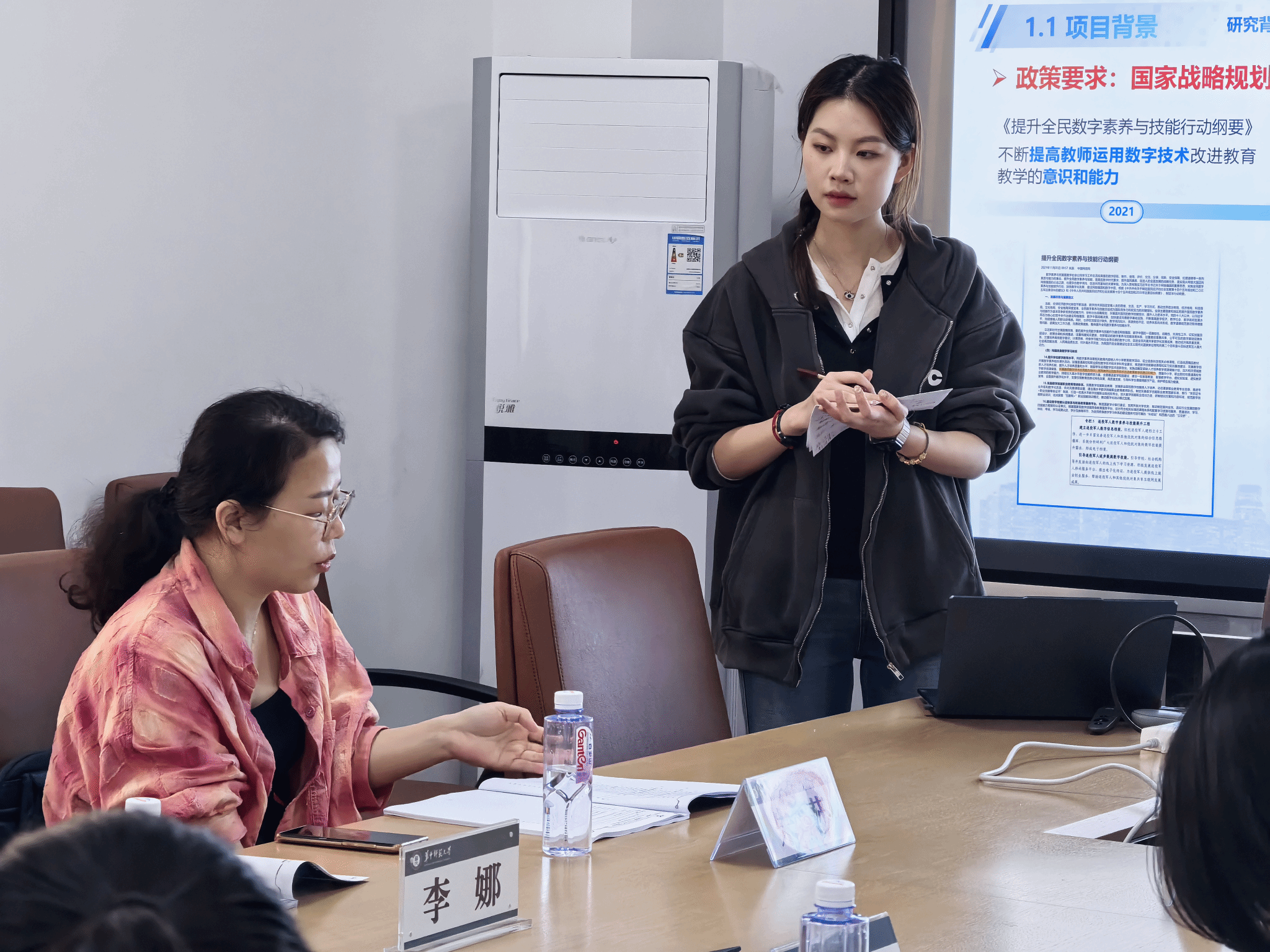 项目负责人刘璇对照学校重点项目答辩要求进行模拟答辩,从研究的背景与意义、目的与内容、方法与过程、结论与建议和成果及转化五个板块,对项目进行详细的介绍与陈述。