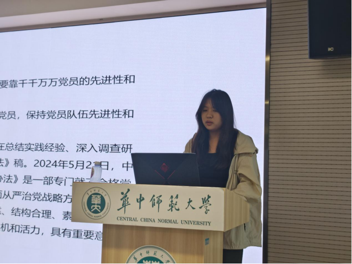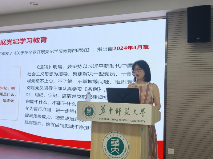 随后,学部博士第二党支部的孙妍同志领学了“推进党纪学习教育常态化长效化”。她强调,党员同志在常学常新中明晰纪律红线,在常思常进中筑牢信仰根基,在常践常得中主动担当作为,真正把党纪学习成果转化为提升能力、推动工作、助力发展的实效。