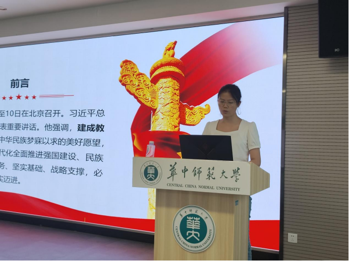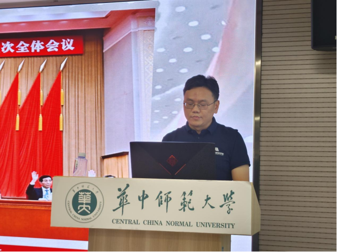 (通讯员 杨荣华)为深入学习贯彻党的二十届三中全会精神,进一步夯实党的组织基础,增强学生党员的思想政治素养。9月19日上午,人工智能教育学部教育学数媒科传硕士第一党支部与博士第二党支部联合举办了一场别开生面的联学共建活动。活动在硕士第一党支部曹艺同志的主持下顺利进行,华中师范大学党委学生工作部副处长鲍新龙,以及人工智能教育学部党委副书记、纪检委员邓飞也亲临现场。此次党日活动不仅是对党的理论传承与创新的一次实践,更是对全体党员坚定理想信念、锤炼党性修养的一次深刻洗礼。