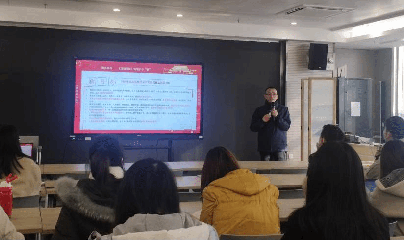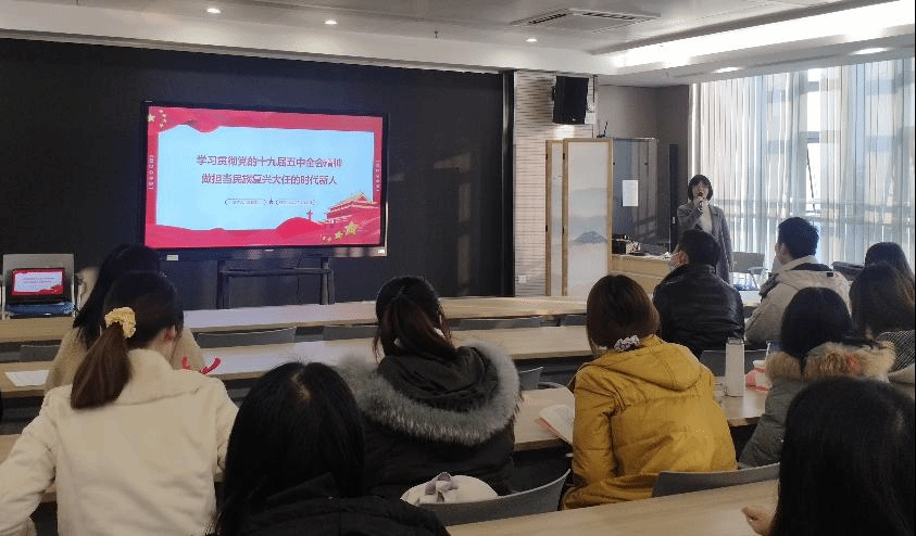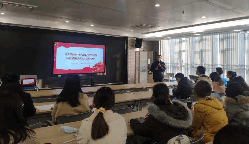会议伊始,王潘对本次宣讲会的主讲人以及到会成员进行了简单的介绍。宣讲会围绕:党的十九届五中全会的概况、十九届五中全会的意义、《规划建议》编制的特点、《规划建议》结构组成、《规划建议》突出六个“新”以及“学做结合、全面发展,做担当民族复兴大任的时代新人”六个方面有序展开。