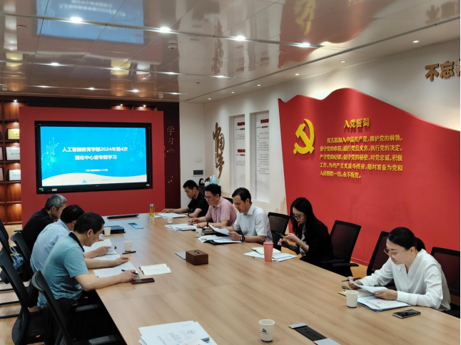 (通讯员 赵悦)4月28日上午,人工智能教育学部2024年第4次党委中心组专题学习在南湖综合楼1161会议室举行。会议由学部党委书记黄涛主持,学部党委中心组成员参加学习。