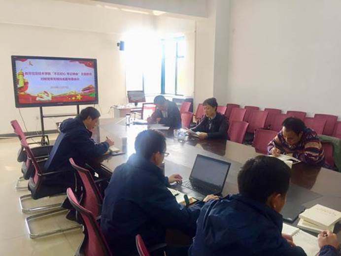 2019年11月7日下午,按照学校“不忘初心、牢记使命”主题教育领导小组要求,院党政领导班子在635会议室召开了“不忘初心、牢记使命”主题教育对照党章党规找差距专题会议。会议由院党委书记游丽主持,校“不忘初心,牢记使命”主题教育第三指导组组员、本科生院(党委学工部)许亨洪同志到场指导。