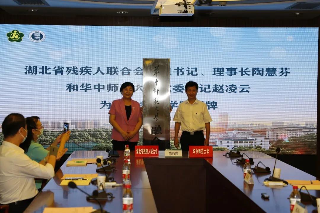 6月24日,华中师范大学与湖北省残疾人联合会合作共建融合教育学院签署战略合作框架协议暨融合教育学院揭牌仪式在逸夫国际会议中心举行。湖北省残联党组书记、理事长陶慧芬女士,校党委书记赵凌云,校党委副书记、校长郝芳华,副校长夏立新及双方有关单位负责人出席。揭牌仪式由副校长李鸿飞主持。