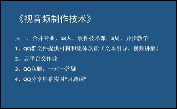 首先,黄磊老师介绍了自己《视音频制作技术课程》教学经验。黄老师由课堂基本情况引入,从学习任务资料发布、“一对一”答疑、学习情况总结、对于学生困惑的引导解答进行了详细介绍,并提出了自己在异步在线教学过程中的困惑和思考,和与会教师进行了讨论交流。