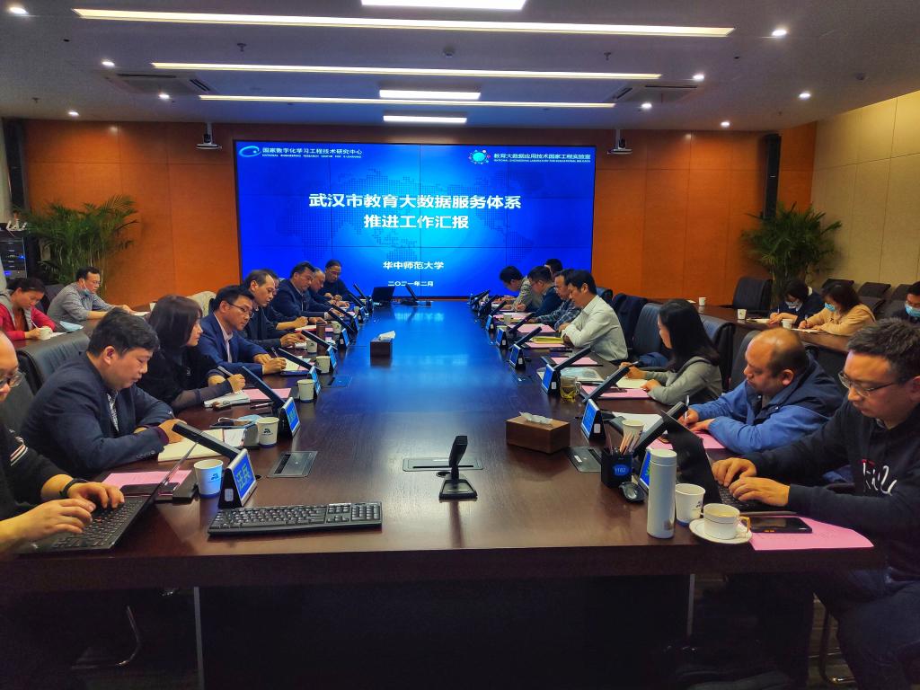 教育大数据应用技术国家工程实验室教授易宝林就武汉市教育大数据中心建设工作进展、大数据体系推进方案、2021年工作内容、工作机制和条件保障等方面进行了汇报。武汉市教育局基础教育处、武汉市教科院、教育大数据应用技术国家工程实验室等合作双方单位负责人分别对进一步推进项目进行了介绍。