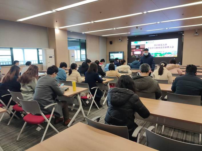 赵凌云书记在讲话中指出,习近平总书记在党史学习教育动员大会上的重要讲话,深刻阐明了开展党史学习教育重大意义、重点任务和工作要求,为学校开展好党史学习教育指明了方向,提供了根本遵循;强调要准确把握党史学习教育的目标要求,努力在学习中增强建设教师教育领先的世界一流大学的信心,坚持学史明理、学史增信、学史崇德、学史力行,进一步增强“四个自信”,做到“两个维护”,充分认识和肩负起时代责任,担起办好华中师范大学的使命和责任;号召全体党员把党史学习教育与贯彻第十二次党代会精神结合起来,与学校“十四五”规划谋篇布局结合起来,与“双甲子”校庆筹备工作结合起来,与为广大师生员工办实事结合起来,与切实转变党风、政风、作风结合起来,与学科建设、专业建设、课程建设、人才队伍建设、人才培养体系建设、科学研究体系建设结合起来,真正将党史学习教育过程转化为推动学校事业发展的过程,将党史学习教育的成果转化为推动学校发展的强大动力。