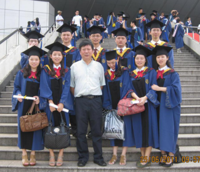 2011年退休之前与毕业生合影