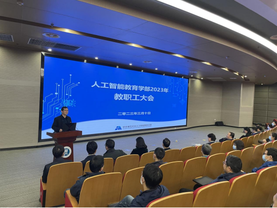 3月10日,人工智能教育学部干部任命会议在南湖综合楼一楼报告厅举行。校党委书记夏立新,校长郝芳华,校党委副书记、党委组织部部长陈迪明出席会议,党委组织部负责同志、人工智能教育学部党政领导班子成员及全体教职工参会。会议由陈迪明副书记主持。