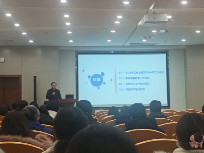 (通讯员 田璐)2024年2月25日上午,人工智能教育学部教职工大会在南湖综合楼一楼多功能厅顺利举行。会议由学部党委书记黄涛主持,学部全体教职工参加会议。