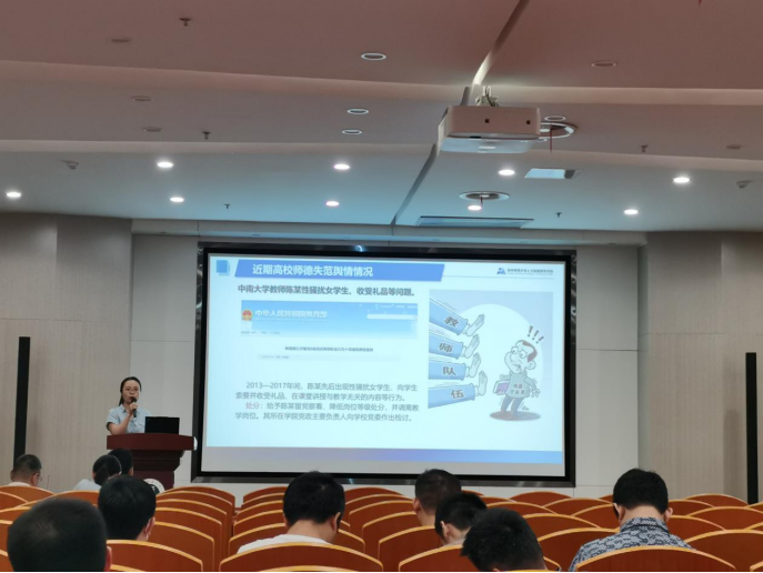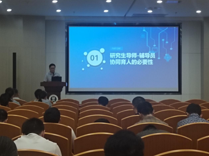 随后,围绕研究生导师工作专题,教育信息技术学院副院长左明章、学部党委副书记邓飞、李娜分别作《一流学科建设与研究生培养》、《完善联动机制 强化协同育人》和《强化立德树人职责 构建和谐导学关系》报告。左明章副院长向与会教职工介绍了学部一流学科强基计划,深入讲解了研究生培养质量管理相关制度,并探讨了公费师范生教育硕士培养相关问题;邓飞副书记则从研究生导师-辅导员协同育人的必要性、具体实践以及研究生导学关系中存在的问题三个方面出发,对学部如何进一步加强协同育人进行了分析,并通报了学部研究生就业工作情况;李娜副书记对全体教职工开展了师德师风警示教育,同时对抓好毕业生就业工作和学生创新创业工作进行了安排部署。