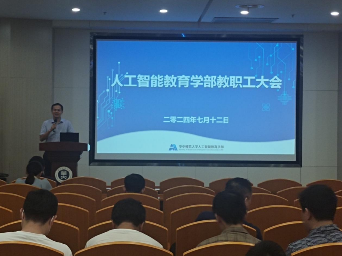 (通讯员 田璐)2024年7月12日下午,人工智能教育学部教职工大会在南湖综合楼一楼多功能厅顺利举行。会议由学部党委书记黄涛主持,学部全体教职工参加会议。