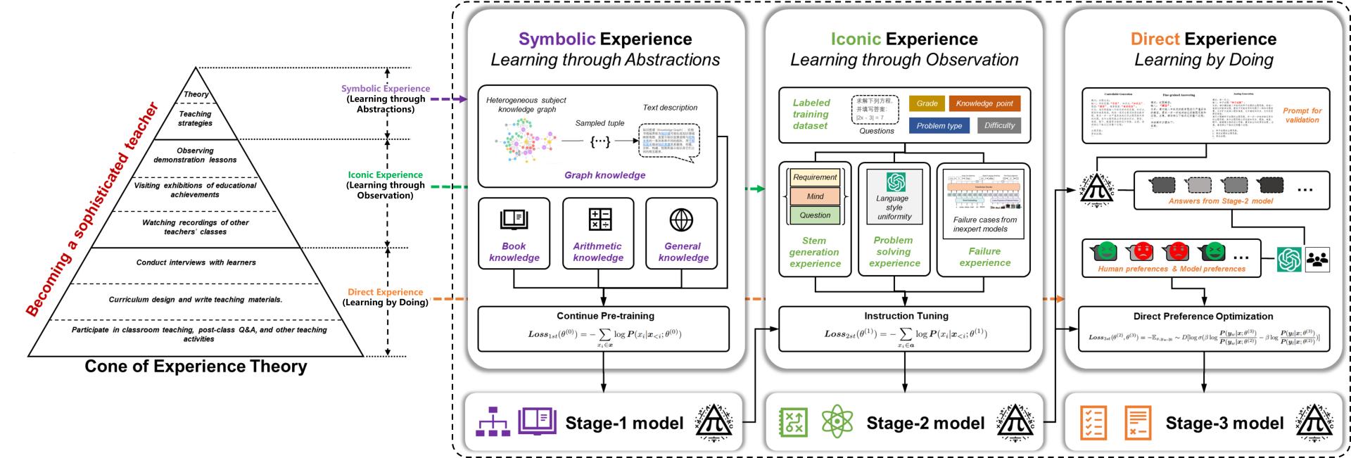 (通讯员:万仟)近日,人工智能教育学部刘三女牙教授团队在教育大模型研究方向取得重要进展,创新性提出基于经典教育学理论“经验之塔”的教育大模型塔式构建法,在此基础上设计了多智能体自主驱动的教学场景数据合成框架,为促进教育大模型创新发展提供了一种新颖且有效的技术途径。此外,研究团队成功获批本年度国家自然科学基金重点项目“面向智慧教育的多模态模型构建方法”。