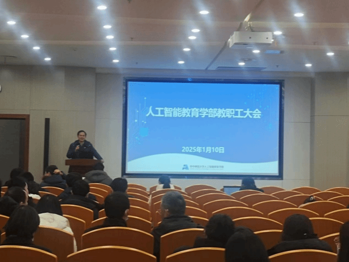 (通讯员 田璐)2025年1月10日下午,人工智能教育学部教职工大会在南湖综合楼一楼多功能厅顺利举行。会议由学部党委书记黄涛主持,学部全体教职工参加会议。