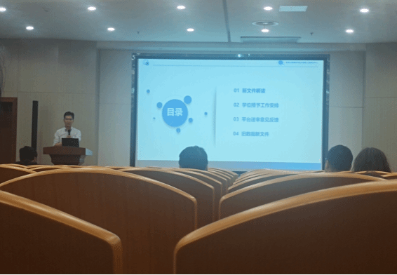 学部国家数字化学习工程技术研究中心副主任吴和林传达了2025年上半年学位论文工作注意事项,重点解读了学校相关文件政策、学位授予工作安排,教育硕士毕业论文标准要求等内容,通报了论文送审意见反馈情况,要求全体导师严格落实全过程指导责任,把好毕业生论文质量关,并介绍了“引智基地”的申报条件和注意事项。教育信息技术学院副院长罗恒围绕毕业论文标准、单证申请流程、公共课程补考、毕业答辩要求等方面解读了教育硕士研究生培养的有关政策,确保各项培养环节规范有序推进。