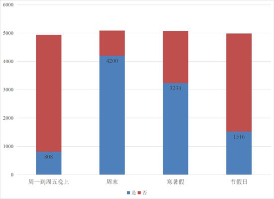 课题组调查数据表明,36.5%的学生表明每周校外培训时长在4小时以上,16.1%的家长表示每周校外培训时间在6小时以上;82.5%的学生表示周末会参加校外培训,63.7%的学生表示寒暑假会参与校外培训,30.4%的学生节假日会参与培训;21.6%的学生表示会参与4-6个学科的培训,4.9%的学生培训科目在7个及以上。存在相当一部分学生培训时间较长,参培学科较多,将中高考改革给学生减轻的负担化为泡影,造成了校内减负校外加压、线下减负线上加压的怪象。