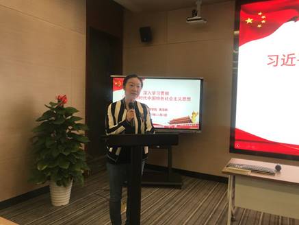 教育学院党委副书记黄玉新采用图文并茂、影相结合、讲授和互动结合方式带同学们通读了《习近平新时代中国特色社会主义思想学习纲要》,她通过讲解“八个明确”和“十四个坚持”的核心内容,全面系统地阐述了习近平新时代中国特色社会主义思想丰富内涵。
