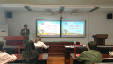 黄涛副书记的党课主题为“学习贯彻习近平新时代中国特色社会主义思想,落实立德树人根本任务”。他从中国发展进入新时代、中国国际地位迎来历史性翻转及党的建设面临历史性风险三个方面对习近平新时代中国特色社会主义思想的形成背景进行了解读,之后阐述了党的十九大报告中“八个明确”、“十四个坚持”的内涵及二者的内在联系,强调习近平新时代中国特色社会主义思想是中国共产党的智慧结晶,全体党员要站在战略高度深刻理解其精髓要义。
