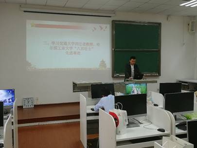 随后,安浩杨带领大家学习了交通大学西迁老教授、哈尔滨工业大学“八百壮士”先进事迹。通过对胡奈赛等十五位西安交通大学教授和八百多名响应国家号召建设哈尔滨工业大学的师生事迹介绍,党员同志深受鼓舞,纷纷主动表示要深入学习更多优秀共产党员的先进事迹。