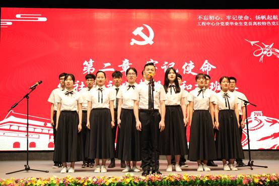 “亲爱的妈妈请别为我们流泪,我们已经做好了准备,亲爱的老师们,请为我们祝福,我们已做好准备,整装出发”,工程中心2018级学生党支部献上《共青团员之歌》,为即将奔赴工作岗位的学长学姐们祝福壮行。