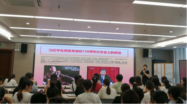(通讯员 张雪迪)2021年6月18日下午,人工智能教育学部研究生党支部开展了以“百年恩来”为主题的党课活动,党委委员盘华老师带领学部全体研究生党员,入党积极分子重温党的历史,学习习近平总书记在周恩来诞辰120周年纪念会上的讲话,回顾周恩来同志在为中国人民谋幸福、为中华民族谋复兴、为人类进步事业而奋斗的光辉一生中建立的卓著功勋、展现的崇高风范。