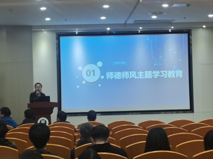 首先,学部党委副书记李娜做师德师风教育专题报告。她围绕“立师德,塑师表,铸师魂”这一主题,带领学部教职工认真学习了习近平总书记关于师德师风的重要论述以及国家和学校有关师德师风建设的重要文件,并结合教育部曝光的违反教师职业行为十项准则典型案例等内容帮助广大教职工深刻理解师德失范的主要表现和严重后果。李娜副书记指出,师德师风建设是学部常抓不懈的重要工作,学部从加强领导,建立工作机制;加强学习,深入教育实践;树立典型,学习师德标兵以及将师德师风建设要求贯穿教师管理全过程四个方面来开展师德师风建设工作。最后,她对教职工提出了明确要求,希望各位教师都能够做到以德修身,恪守师德;以德修己,弘扬师魂;以德育人,桃李芬芳。